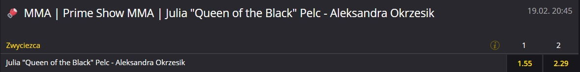 Kursy na walkę Queen of the Black vs Ola Okrzesik wskazują, że faworytką jest pierwsza z zawodniczek. Nic dziwnego - Queen of the Black ma już za sobą walkę w MMA. Co prawda przegraną, ale jednak wie, z czym wiąże się samo wyjście do klatki i emocje związane z pojedynkiem. Ola Okrzesik do karty walk wskoczył na ostatnią chwilę, więc nie powinien dziwić fakt, że bukmacherzy niższy kurs wystawili na Julię Pelc.