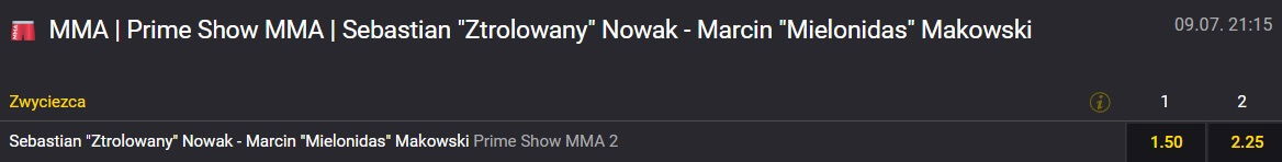 Sebastian "Ztrolowany" Nowak i Marcin "Mielonidas" Makowski zmierzą się na gali Prime Show MMA 2. Kto jest faworytem tego pojedynku, jeśli chodzi o zakłady bukmacherskie?